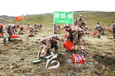 近年來(lái),甘孜軍分區(qū)官兵積極投身駐地生態(tài)文明建設(shè),廣泛開展種植國(guó)防林活動(dòng),受到駐地群眾好評(píng)。圖為官兵正在植樹。(邢延超 攝影報(bào)道)