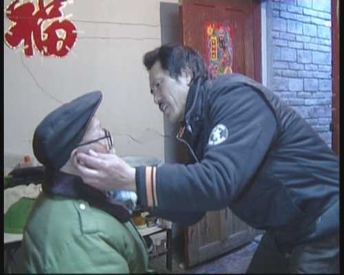 小熱登為陳遠(yuǎn)達(dá)老人洗臉。