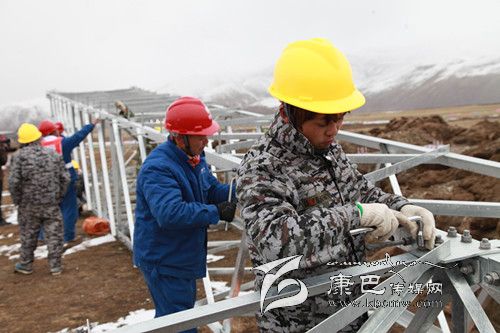 石渠縣海拔高,長(zhǎng)冬無(wú)夏,空氣含氧量?jī)H為成都平原的45%,電力建設(shè)面臨著“高原高寒缺氧、生態(tài)環(huán)境脆弱、凍土區(qū)沼澤區(qū)施工”等世界性難題。在這里走路稍微快一點(diǎn)都要大口喘氣,更何況在高山雪地上施工,搬運(yùn)建材,其施工難度可想而知。石渠至洛須110KV工程是國(guó)網(wǎng)成都供電公司承擔(dān)“電力天路”工程項(xiàng)目中唯一一條110kV電壓等級(jí)線(xiàn)路工程,是連接石渠變電站和在建的110kV洛須變電站的主要電力通道,線(xiàn)路全長(zhǎng)為64.268km,新建鐵塔187基,沿線(xiàn)海拔高度為3300~4800m,線(xiàn)路多在雪山脊梁及斜坡走線(xiàn)。4月的石渠高原,依然是冰天雪地,寒風(fēng)呼嘯,在石渠至洛須110KV線(xiàn)路87基塔基澆筑現(xiàn)場(chǎng),這里海拔4500多米,然而這里卻是一片熱火朝天的場(chǎng)景,一頂頂黃色安全帽下,急促呼吸冒出的熱氣讓每一個(gè)人的面目更加模糊?,F(xiàn)在內(nèi)地正是春暖花開(kāi),春意盎然的季節(jié),而我們的施工現(xiàn)場(chǎng)確實(shí)冰天雪地,為了讓廣大農(nóng)牧民早日用上電,四川電建工人們克服高寒、缺氧等惡劣自然條件,正在抓緊施工。110kV線(xiàn)路有的建設(shè)段施工人員靠相互扶持摸索上山,有的施工點(diǎn)一個(gè)來(lái)回要走6個(gè)多小時(shí),材料、工器具都必須靠驢隊(duì)及索道運(yùn)輸。為了搶工期節(jié)約時(shí)間工程建設(shè)者克服嚴(yán)重的高寒缺氧等惡劣的自然條件吃住在雪山上,累了、呼吸困難時(shí)吸口氧,渴了吃一把身邊的“雪糕”。到今年4月30日,“電力天路”石渠境內(nèi)工程進(jìn)度已完成工程總投資的40%。