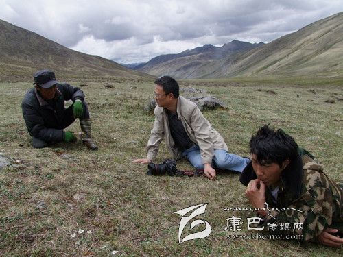 記者現(xiàn)場采訪采挖蟲草的牧民。