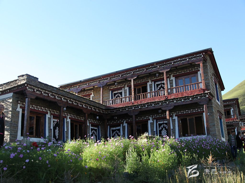 貢嘎宗·莊園坐落于新都橋鎮(zhèn),距318國(guó)道600米的半山腰處,從酒店客房遠(yuǎn)可眺望貢嘎雪山,近可欣賞美麗的田園風(fēng)光。貢嘎宗·莊園的標(biāo)志性建筑是一座五層高的碉樓,碉樓是藏區(qū)很有歷史代表性的建筑,在古代主要是起到防御的作用,這里的碉樓和住宅緊靠在一起,每一間房屋都是朝陽(yáng)而居,采光極好,每座樓房的每面墻上開著三四扇窗戶,窗檐上用紅、黑、白、藍(lán)等色彩描繪著,偶爾可見喜鵲在房前、溪邊、草地上飛翔、跳躍。所以主人將其取名為“貢嘎宗,”意為“貢嘎雪山映照下的城堡。”
