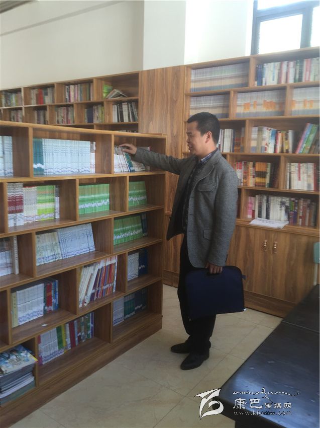 梅紅兵在德格縣一完小整理捐贈(zèng)書籍。