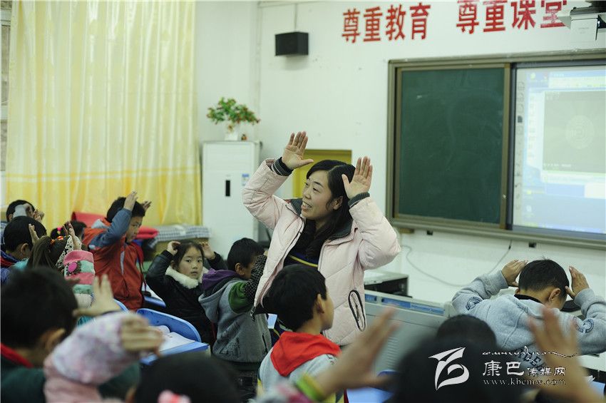 “同學(xué)們,我們?cè)賮砭毩?xí)一下好嗎?”孩子們齊刷刷地隨著音樂又唱又跳,《鵝》、《春眠》、《小雨沙沙地下》三首歌曲之后孩子們興致高漲、喜笑顏開,裴老師一個(gè)暫停手勢(shì),教室立刻安靜下來,緊接著就是密集的移動(dòng)桌椅的聲音,30多張書桌很快又被排放得整整齊齊,整個(gè)過程老師沒說一句話,這群六七歲的孩子卻仿佛久經(jīng)訓(xùn)練的士兵反應(yīng)迅速而有序。