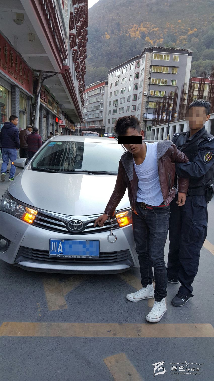 是日上午8點(diǎn)40分許,康定市公安局巡警大隊(duì)東關(guān)巡邏組(三中隊(duì))接指揮中心轉(zhuǎn)警:“接成都警方通報(bào),有兩輛涉嫌被盜的川A牌照豐田系轎車正在進(jìn)入康定市爐城鎮(zhèn)轄區(qū),請(qǐng)巡警大隊(duì)設(shè)卡攔截,務(wù)必將犯罪嫌疑人堵截抓獲。”警情就是命令,接報(bào)后,康定市公安局巡警大隊(duì)三中隊(duì)值班民警在澤仁羅布中隊(duì)長(zhǎng)的帶領(lǐng)下迅速出擊,在東關(guān)新車站處組織警力設(shè)卡攔截。約2分鐘左右后,兩輛與通報(bào)被盜車輛特征吻合的可疑車輛進(jìn)入設(shè)卡民警的視野范圍。當(dāng)兩輛車內(nèi)的嫌疑人看到嚴(yán)以待陣的民警,其中一輛嫌疑車輛急剎車調(diào)轉(zhuǎn)車頭往瀘定方向逃逸,另一輛嫌疑車輛則猛地加速直接沖過(guò)卡點(diǎn)向城區(qū)方向逃逸。