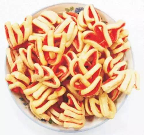 酥油果子也被成為藏式麻花,是甘孜藏民家中茶幾上必有的待客零食。酥油果子的原料是面粉和酥油。在和面的過(guò)程中加入酥油,然后放入清油中炸成金黃色。香酥可口、有甜味的、咸味的...過(guò)年、結(jié)婚、祭祀、平時(shí)食用都不可少。