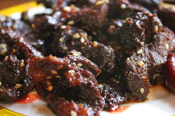 3500米以上地區(qū)這些地方生長著許多野生藥種如貝母,蟲草等,耗牛常食這些藥材,其肉鮮美無比,殺后可炒紅燒,清燉或涼曬成干巴等,其味獨特,吃耗牛肉在迪慶,實在是一種享受。并可在市場購買干巴,肉松等作饋贈青朋好友的禮品。牦牛肉可以粘辣椒油,味道仍然鮮美。康定的牛肉不僅有牦牛肉,還有熏牛肉等等,比起其他康定特產(chǎn)更是別具一番風味。