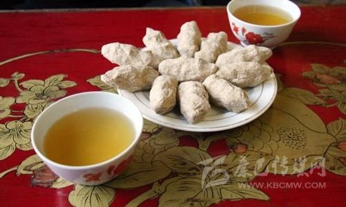藏族人一日三餐都缺不了糌粑。糌粑就是用青稞制成的炒面。它是將青稞麥炒熟、磨細(xì)、不經(jīng)過(guò)篩濾而制成的,與我國(guó)北方制作的炒面有點(diǎn)相似,區(qū)別是北方的炒面是先磨后炒,而糌粑卻是先炒后磨,而且是不除皮的。
