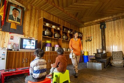 觀看圖片展的贈(zèng)科小學(xué)退休老校長阿伙布老人一邊指著贈(zèng)科鄉(xiāng)安卡村的全貌圖,一邊自豪地給身邊觀展的人群說:“這是我的家鄉(xiāng),在六七十年代的時(shí)候,村里房子是沒有樓層的土木房?,F(xiàn)在,村里的人居環(huán)境有了很大改善,房子也修得很漂亮??吹郊亦l(xiāng)的變化,我非常高興。”