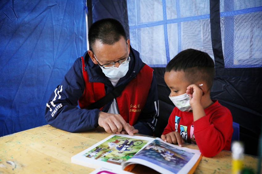 在社會(huì)各界搶險(xiǎn)救援隊(duì)伍的鼎力支援下,災(zāi)區(qū)的道路、電力、通信等逐漸恢復(fù),生活逐步走上正軌;在愛心志愿者的安撫關(guān)心下,孩子們走進(jìn)“帳篷課堂”,朗朗書聲、歡快笑聲日漸增多。