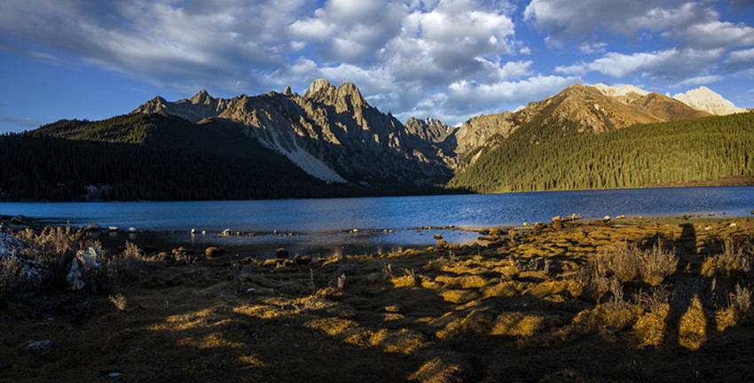 當秋風輕輕吹過巴塘的時候,無論雪山,還是湖水,還有那藍天白云,都有了一種高遠而空曠的美。那高聳入云的雪峰,或是田間地頭的金色,總有一抹明亮的色彩,令你喜歡。我喜歡雪山的巍峨壯麗,也喜歡高山流水的潺潺,更喜歡亞莫措根的彩云。