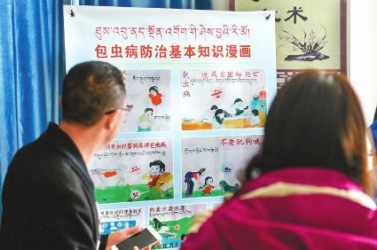 “對包蟲病,預防的重點是養(yǎng)成健康的生活習慣?!笔h疾控中心主任謝飛說。當地推行包蟲病防治教育工作,全縣的學生們每天唱《包蟲病防治之歌》,跳“洗手舞”,學習“七步洗手法”,每周還增設包蟲病防治課程。通過多種方式,全力普及包蟲病防治知識和救治政策,不斷提高健康教育廣度和深度,包蟲病防治知識總體知曉率由過去的30%提高到87.94%。