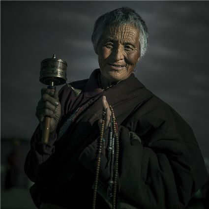 每當(dāng)我手持相機(jī)時(shí),對(duì)他們始終懷有一種敬畏,我捕捉到他們眼神里流露出虔誠(chéng)??粗?jīng)筒上“甲多”的飛轉(zhuǎn),我陶醉了,醉在那轉(zhuǎn)經(jīng)筒的旋轉(zhuǎn)舞動(dòng),醉在那轉(zhuǎn)經(jīng)筒傳誦的故事,醉在那一張張手持轉(zhuǎn)經(jīng)筒的面孔,還有,還有因祈禱音符助推而從未停止的轉(zhuǎn)經(jīng)筒……