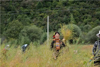 康定市姑咱鎮(zhèn)達(dá)杠村村民李翠軍一邊采摘著蘋(píng)果,一邊喜悅地告訴記者,達(dá)杠所產(chǎn)的蘋(píng)果個(gè)頭大、色澤好、吃味好、耐儲(chǔ)藏,到目前,全村蘋(píng)果種植面積800多畝,去年蘋(píng)果產(chǎn)量160萬(wàn)斤,今年雨水好,蘋(píng)果產(chǎn)量將猛增到200萬(wàn)斤以上。目前,村子里蘋(píng)果種植大戶(hù)家庭年收入過(guò)10萬(wàn)元的就有20多戶(hù)。康定市將達(dá)杠村打造成川藏觀光農(nóng)業(yè)第一村。按照規(guī)劃,村里會(huì)進(jìn)一步擴(kuò)大蘋(píng)果種植面積,以蘋(píng)果利用為核心,發(fā)展“春賞花、夏攝影、秋摘果、冬體驗(yàn)”四季觀光農(nóng)業(yè)產(chǎn)業(yè)。五谷豐登六畜興旺,甘孜高原共慶豐收。農(nóng)民豐收節(jié),它既是億萬(wàn)農(nóng)民慶豐收、曬豐收的節(jié)日,也是全社會(huì)享豐收、助增收的節(jié)日;既寄托著農(nóng)民的追求、農(nóng)民的希冀,也承載著全體中華兒女的深情與追憶;中國(guó)農(nóng)民豐收節(jié),農(nóng)牧民收獲的不只是甜蜜蜜的果實(shí),鼓起的不只是沉甸甸的荷包,更是滿(mǎn)滿(mǎn)的榮譽(yù)感、幸福感、獲得感!