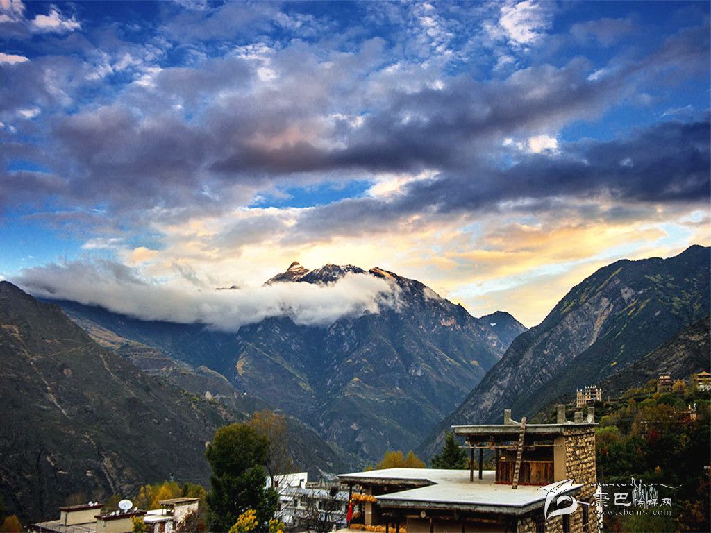 墨爾多山脈起于阿壩州鷓鴣山,如龍盤旋延綿上千里,主峰5000米,在大、小金川匯合處丹巴縣境內(nèi)突兀矗立,高聳入云。西仰猶如一尊巨佛乘騎一頭猛獅奔馳,從西南而望,好似一個藍色寶瓶橫空擺放南望則見四季煙云,峰巒魔變。呈佛經(jīng)所載的須彌山景。