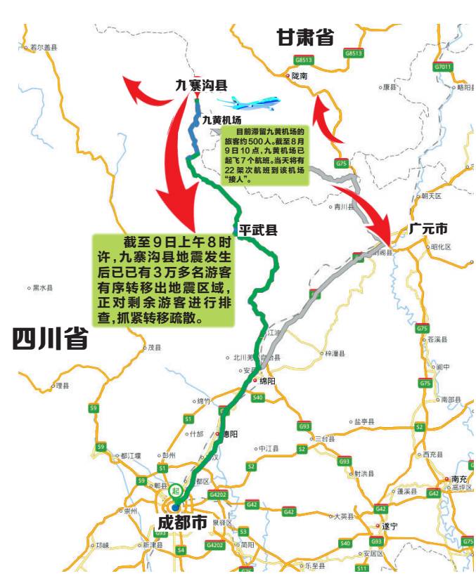 9日上午,九寨溝縣地震發(fā)生后已有3萬(wàn)多名游客有序轉移出地震區域,正對剩余游客進(jìn)行排查,抓緊轉移疏散。
